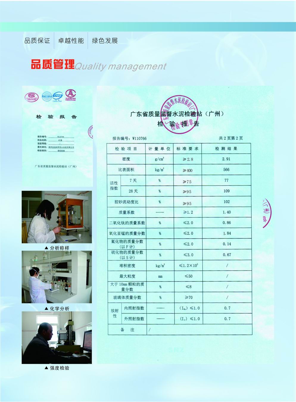 《羅浮山牌》、《國強》牌、《南星》牌、《羅峰》牌、《紅荔牌》、《銀嶺》牌旋窯水泥品質指標